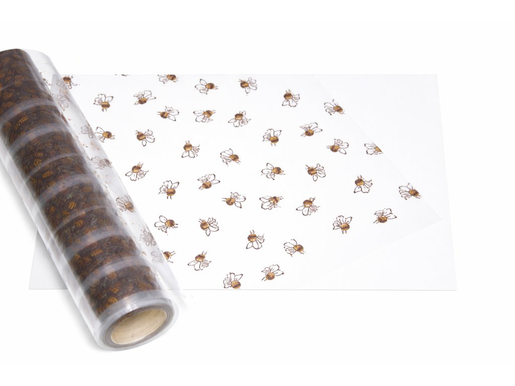 Celofán balící s potiskem včelky.