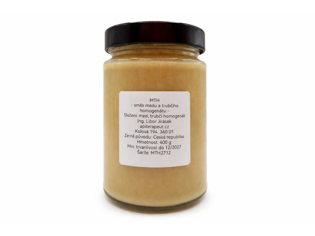Přírodní směs včelího medu a trubčího homogenátu (homogenizovaného plodu trubců) v jednotné konzistenci. Určeno pro dospělé k běžnému užívání dle návodu. Produkt lze konzumovat samostatně nebo rozmíchat ve vlažném nápoji. Chuťově medový, s jemným včelím aroma.