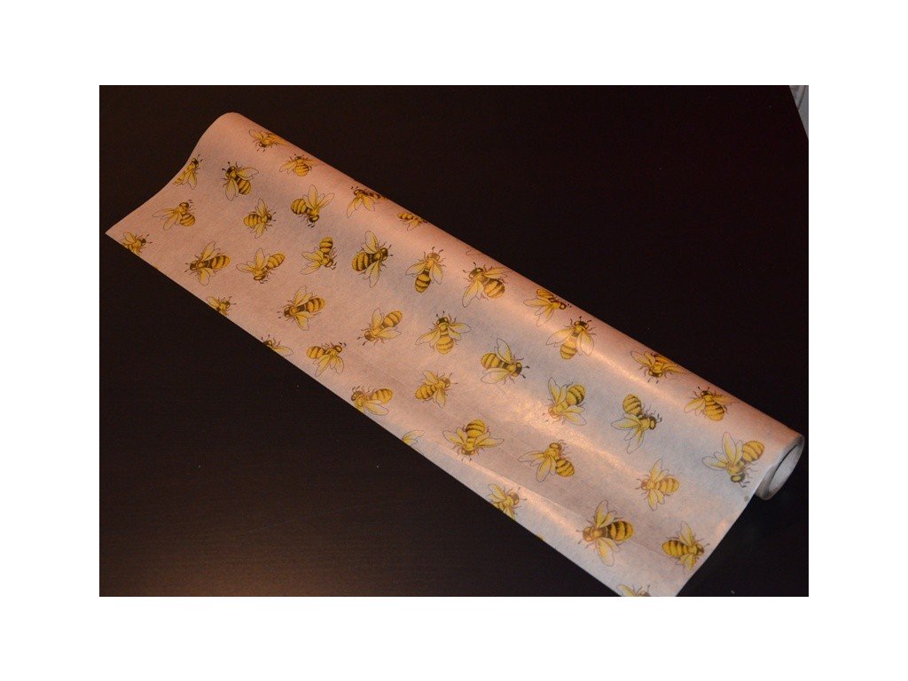 Papír balící, potisk včelky - 1 m x 70 cm