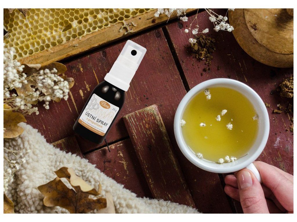 „Nejdůležitější úlohou propolisu ve včelím úlu je působení na bakterie a plísně, díky čemuž se včelstvo udržuje silné a zdravé. Propolis obsahuje prověřené antimikrobiální látky, také je známý pro účinky hojivé. Výtažek z propolisu v tomto ústním spreji pomáhá také nám – je ideální pro odstranění nepříjemných pocitů v ústní dutině při virózách, angíně a také proti zápachu z úst. Stačí jen pár stisků spreje denně.“