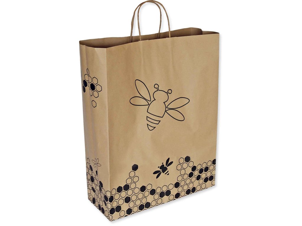 Taška papírová XL potisk včela 32x41 cm